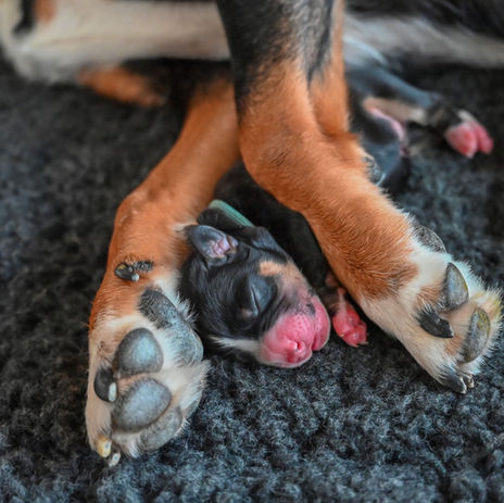 Am 13. März 2022 ist unser erster Wurf Entlebucher Sennenhunde geboren. Es ist ein grosser Wurf mit 7 Hündinnen und 3 Rüden.