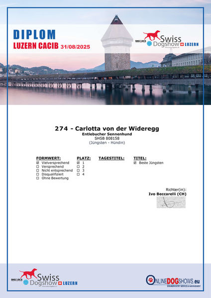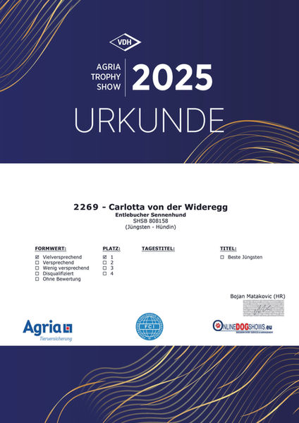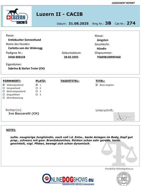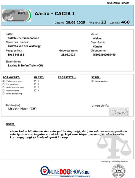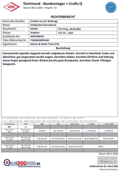 Unsere Entlebucher Hündin Carlotta von der Wideregg wurde am 28.02.2025 in unserer Zuchtstätte geboren.